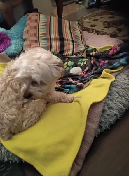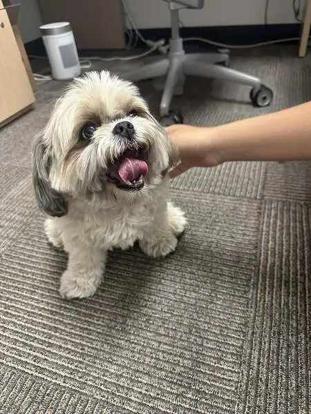 He is tan and cream colored Shih Tzu. He’s very timid is afraid of loud noises and will bark at strangers. His tail is fluffy and ears are fluffy and floppy. Hair was starting to grow out and cover his eyes. He should be due for a grooming. He is microchipped. Ran out of back gate when someone detonated fireworks. Ran down alley. Last seen on S Kostner and W Adams Streets.