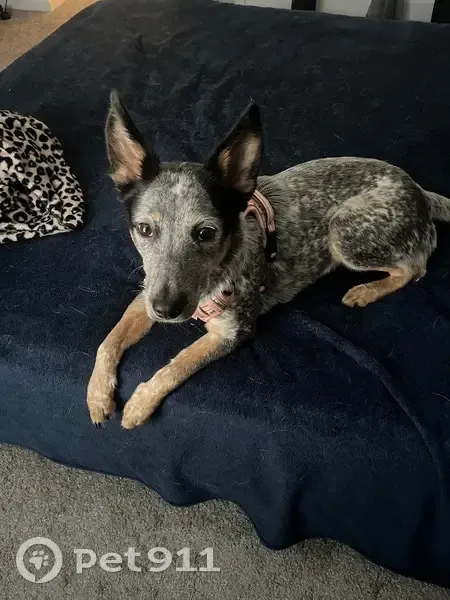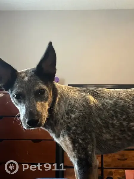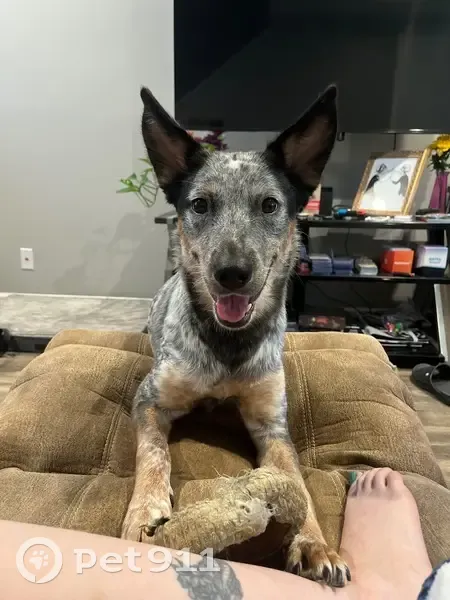 She is a German/shepherd blue heeler mix she is a small/medium sized dog. She has bad separation anxiety I believe she tried to follow me when I left for work this morning. Her name is Korra and she is somewhat skiddish to strangers