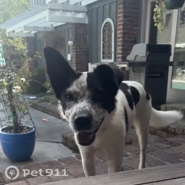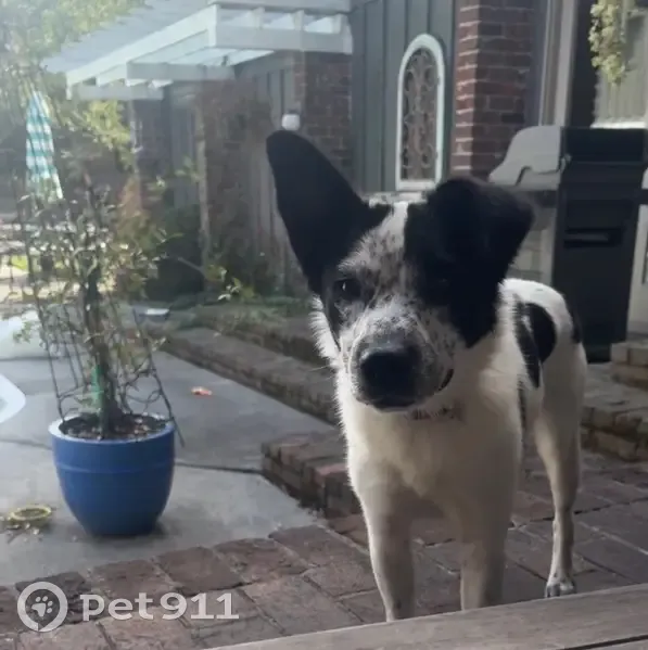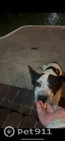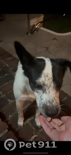 White coat with black spots. 1 ear is floppy and the other stands up. Has black freckles on her face and arms and a fluffy tail. Very skittish. Wearing a collar that is either tan or a pinkish-tan but that may not be exact. I was dogsitting for her and while I was out the yard people came and left the gate open and she escaped. Thankfully the other two dogs she lives with stayed in the yard. I had a few people checking around the neighborhood last night and I made several passes through today. Last sighting that I know of was last night about 10:30 darting between houses on Blueberry Hill