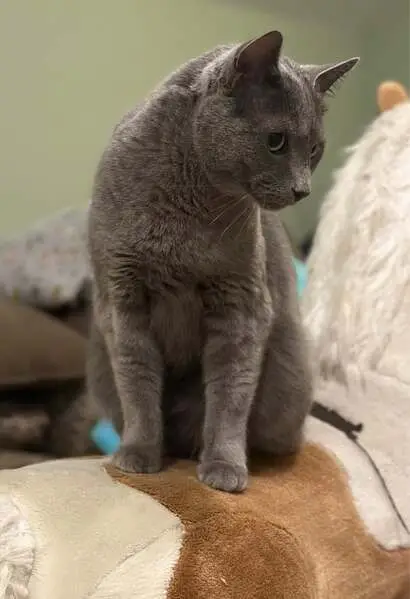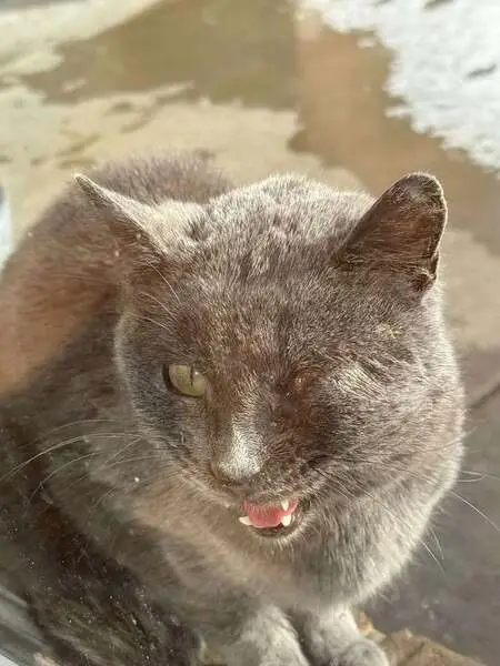 Gray, yellow eyes, neutered, has a few white hairs on chin Found at the Flying W Ranch on the west side in Jan 2025. Dumped there in Dec 2024