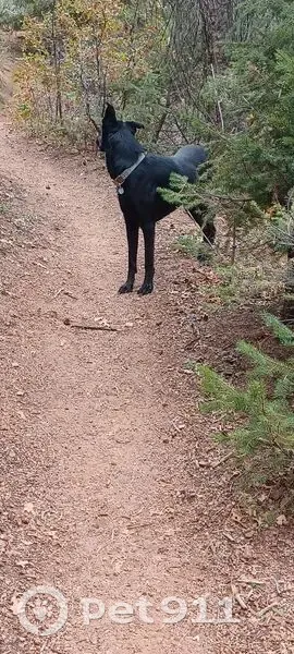 Black lab mix, approx 90lbs, tall. Light blue collar with leopard print. Friendly. Ran off while hiking the Palmer trail. Last seen in the area Saturdsy Oct 11