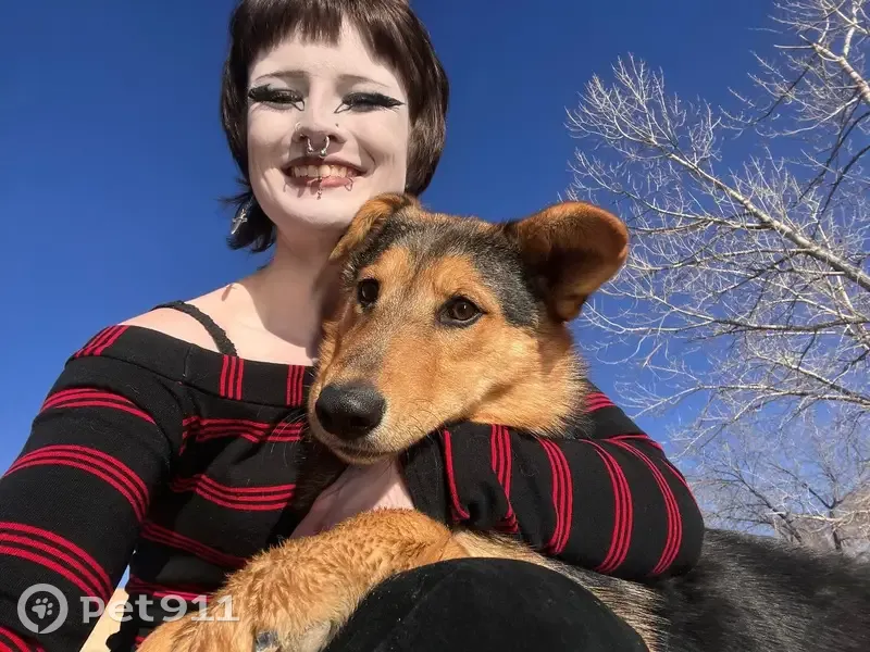 He has typical german shepherd coloring, with floppy ears. Long tail, that almost touches the ground when down. He is extremely sweet and friendly. He has a blue kong harness on, with a black leash still attached. He escaped our yard around 9:00 pm last night.