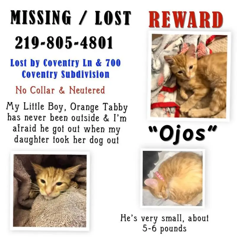 This sweet boy showed up on my porch last night. I leave cat food out for some local strays in my neighborhood. But I could tell he’s not a stray. He’s very friendly, talkative, and playful! Wasn’t scared at all and wanted to come inside. I fed him last night, and he came back again tonight. I can’t have any pets where I live or else I would’ve brought him inside. Praying his family sees this and he can find his way back home!
