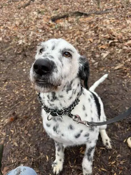 Blue heelers, white black speckles. There are two of them they found me together. One is a puppy one is older. They were in my front lawn when I got home one day.