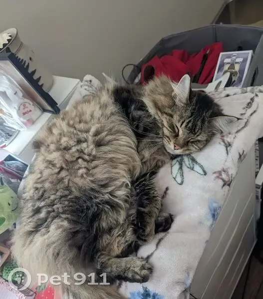 Willow is a long-haired tabby with a mix of brown, white, and grey hair. She is microchipped and has a collar, both of which should have appropriate phone numbers included. She hasn't been seen since last night and we're worried she snuck out. She's an indoor cat and historically has been quite skittish in the limited time she's been outdoors.