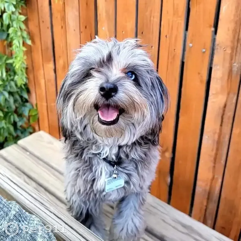 Patches neutered male mini Aussiedoodle 3 years old microchipped. He slipped out of the door while it was open without anybody noticing. He is black, gray and light gray patchy wavy fur. He scares easy and is fast. He is very friendly.If you can get close to him. His eyes are black but If you can get close to him, you can notice that his left eye the bottom half of it is blue. He is small/med dog about 15lbs and was last seen at 2am on 3/7/26 on our house camera heading south on Kearney toward 64th.