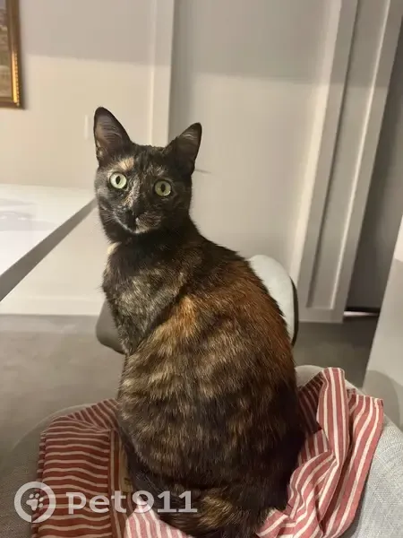 She’s an indoor cat, new to the neighborhood. She has just been brought to the new home, went out to the yard and disappeared immediately. Can be stressed. She’s chipped.