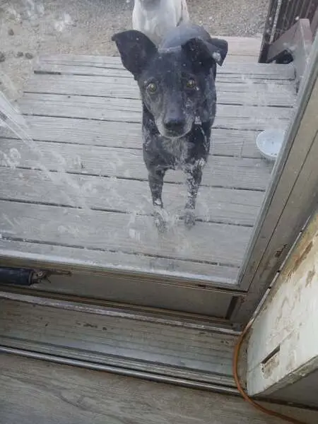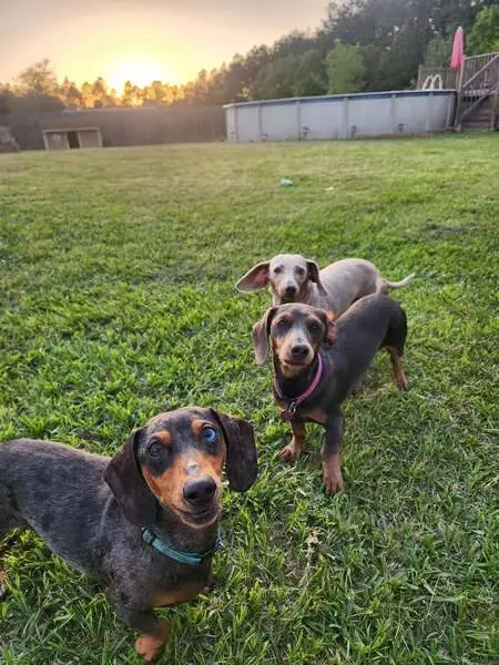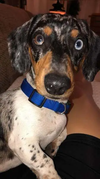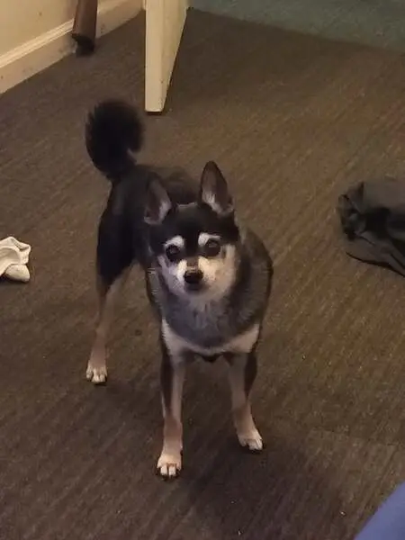 Rainbow collar. No tags and no chip. Very sweet, house trained. Looks like a mix between dachshund and blue heeler maybe? Shepherd face and tail, weenie dog body, blue heeler coloring on belly, neck, and boots