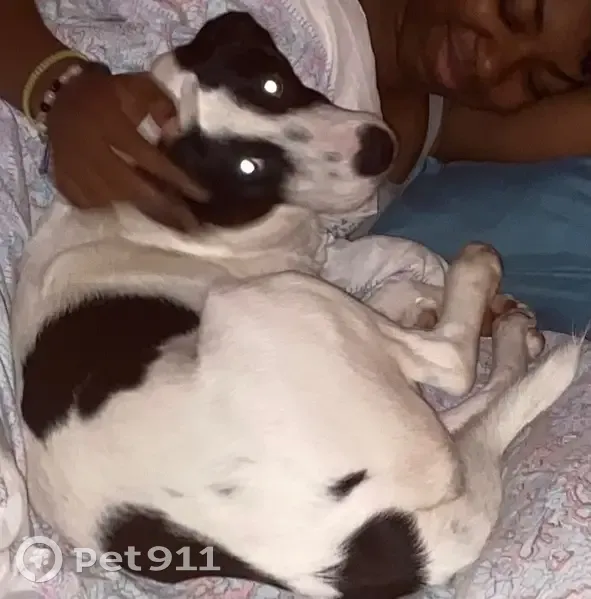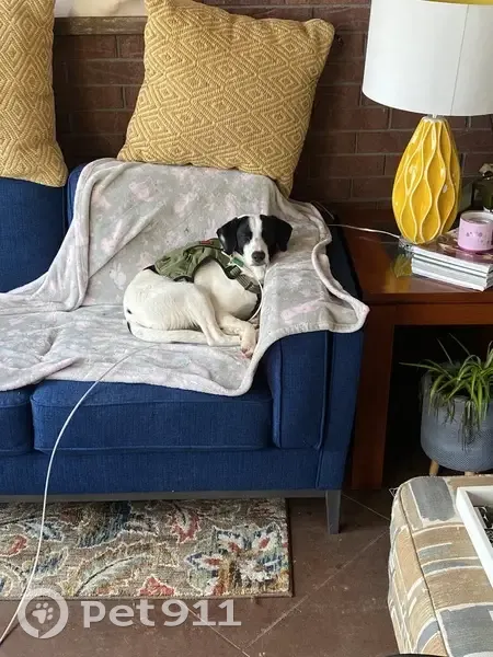 Spot is a medium-sized mixed breed that most closely resembles a Border Collie and Spaniel mix. He is easily recognizable by his distinct black-and-white coat, including large black patches on his body and a noticeable black patch covering both sides of his face. His fur is short to medium in length, and his overall build is athletic, lean, and proportionate
