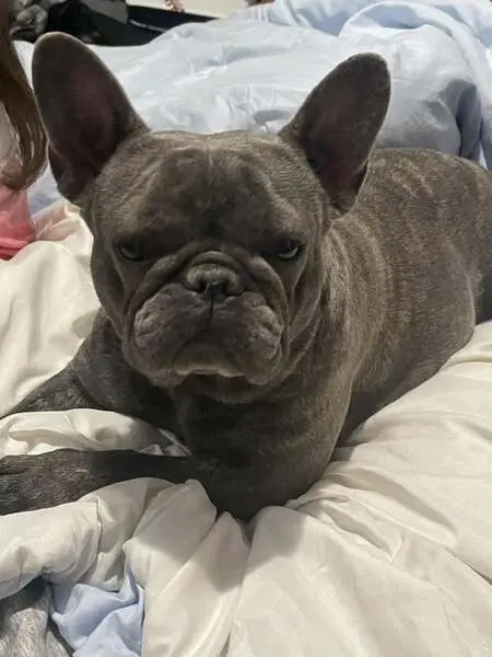 Black French Bulldog w white spot on chest. Ran out during another pet’s emergency. Collar with silver ID tag and Yellow tag to contact for owner’s info.