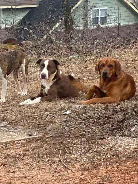 Lab-Hound-Heeler Mix (best guess) Male. No collar, not chipped, intact, well-behaved, seems young, very friendly, passive/not aggressive with other animals.