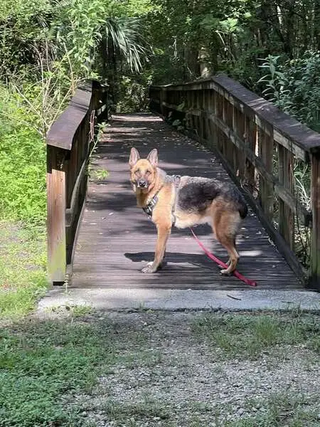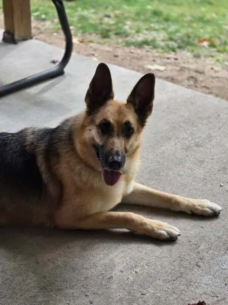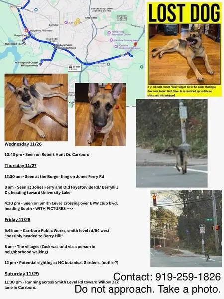 German Shepherd/Malinois mix, seems trained. He was going house to house in our neighborhood and came into my house when I opened the door. He is very skinny, but appears to be cared for.