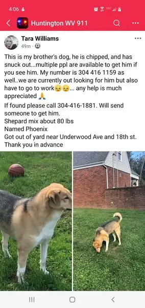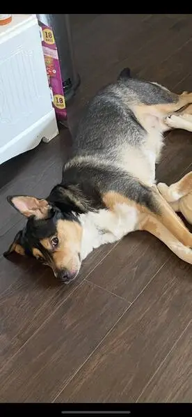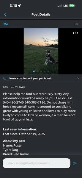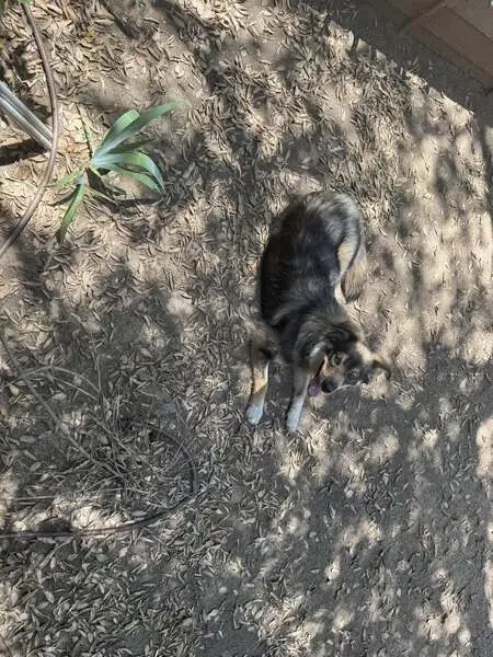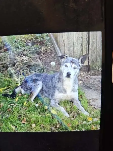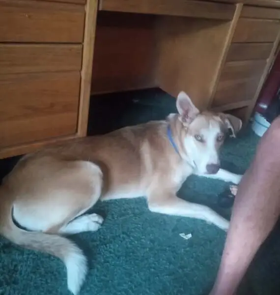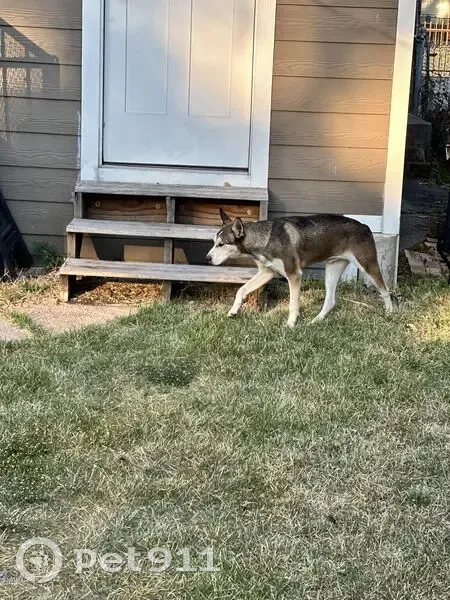 FOUND DOG. I found this young male stray in my yard near Illinois and Marsalis on 10/15/25. He is midsized with a white face and legs and brownish body. He also has heterochromia and looks like a Husky mix. He has a small wound (healing) on his thigh and a slight limp.