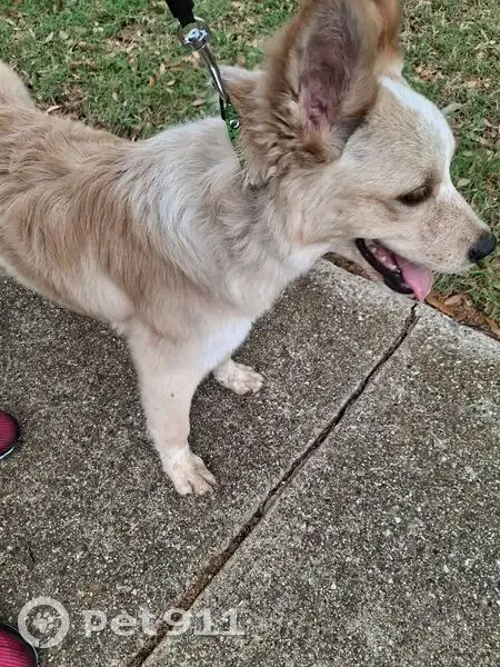 Found it running and jumping into people, not attacking but she plays alot, I think she might be around 6 months old. Looks like a young mix of a labrador, tan color with white spots, furry hair .