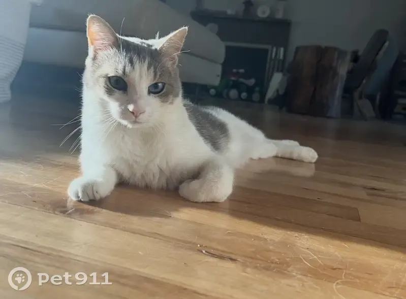Yuki is a white and grey. Grey on top and white on the belly and blue eyes. She is a smaller sized cat. Doesn’t like to be held much so she would probably be hard to pick up.