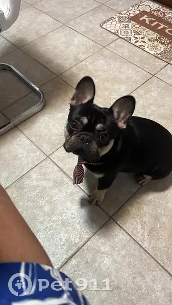 French buldog colo grey and black he very friendly he is mini small he moving out the home very slow we saw in cam try to visit the Neigbor’s he never do that we living there for tre years never happened