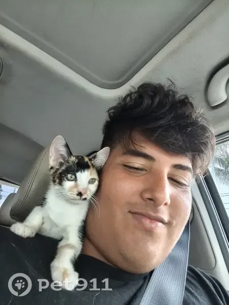 Calico teen last seen yesterday afternoon in the Emerald Lakes neighborhood area in Davie. Usually I wouldn't be worried but she is usually close enough to home (and stays close to mom who we also own) that I whistle and she comes running and she doesn't miss a meal or bed time cuddle. Little older than the pics now (excuse lol). She is spayed and chipped to me. Friendly and hyper.
