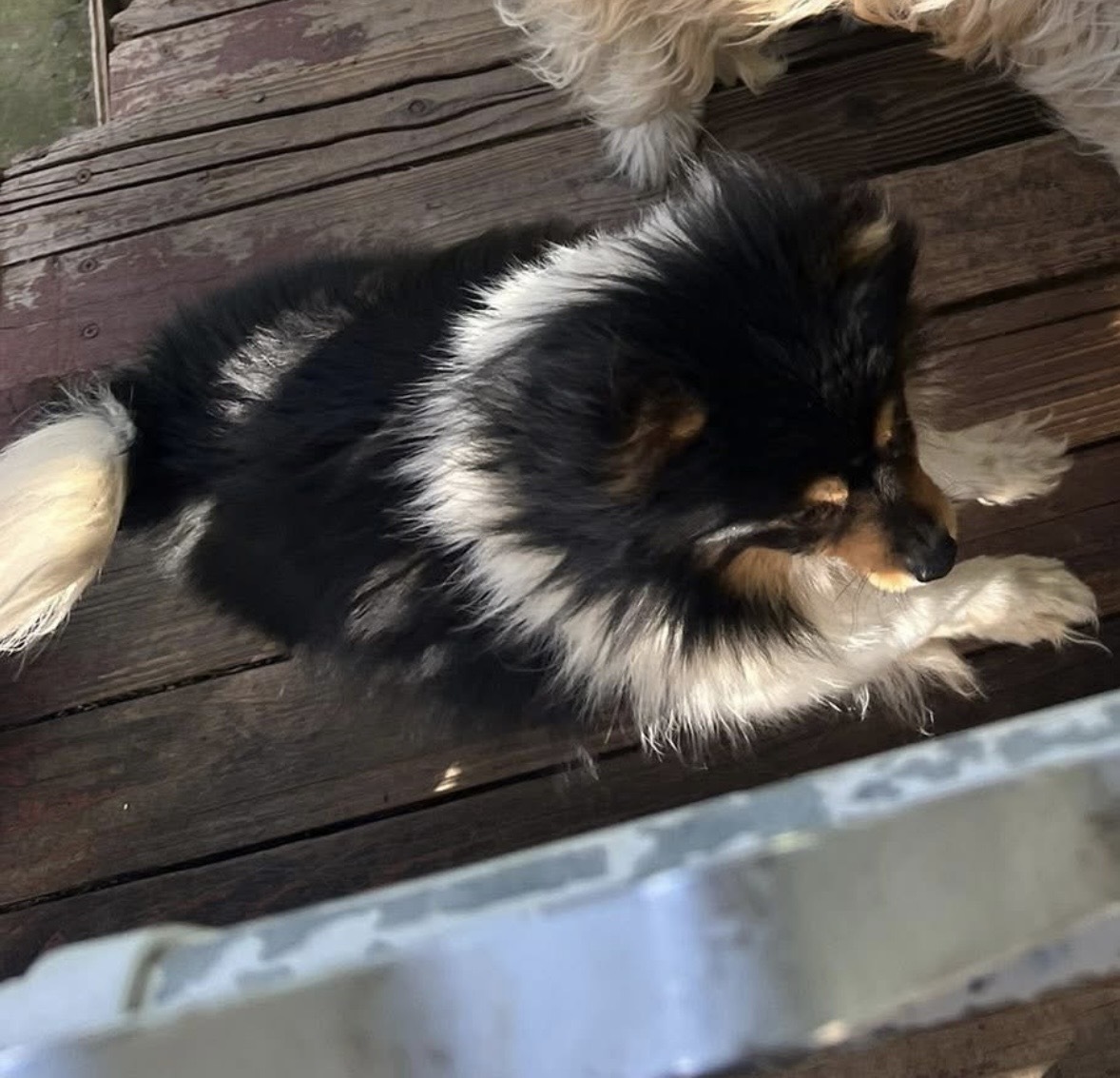 Black, brown and white Pomeranian