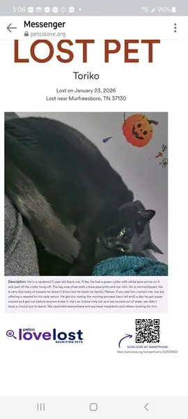 Black with tortie undercoat. Small female that i think is adolescent, but may be just small. She's been hanging out for a week or so. I can't let her indoors as current cat is a bully. If she is yours, let me know. I can help.