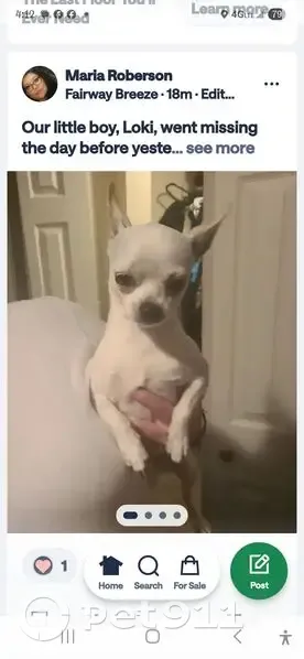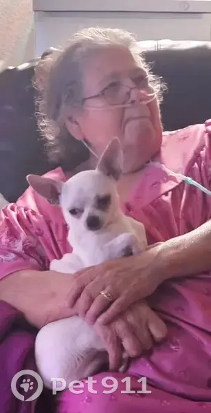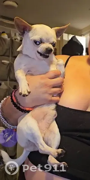 He is white with some small tan patches. He is a very happy and playful lil guy. He is 6 years old but acts like a pup. He does have a mind of his own. We love him so much and miss him. He snuck out of the yard after potty break and he is not familiar with area so he is lost. He does have a chip. Please help find our baby.