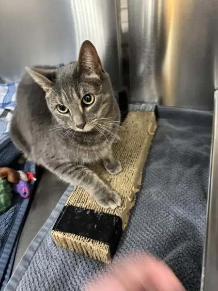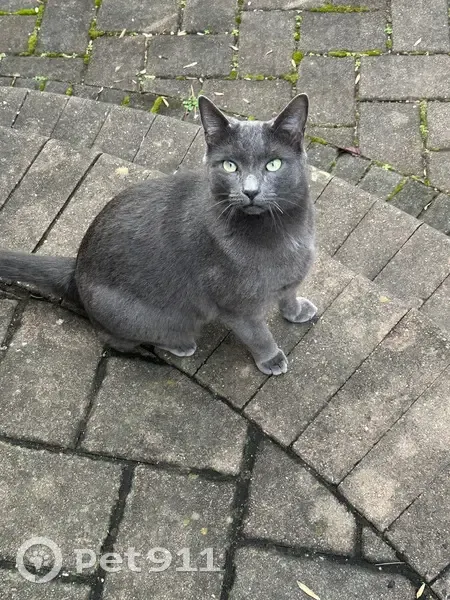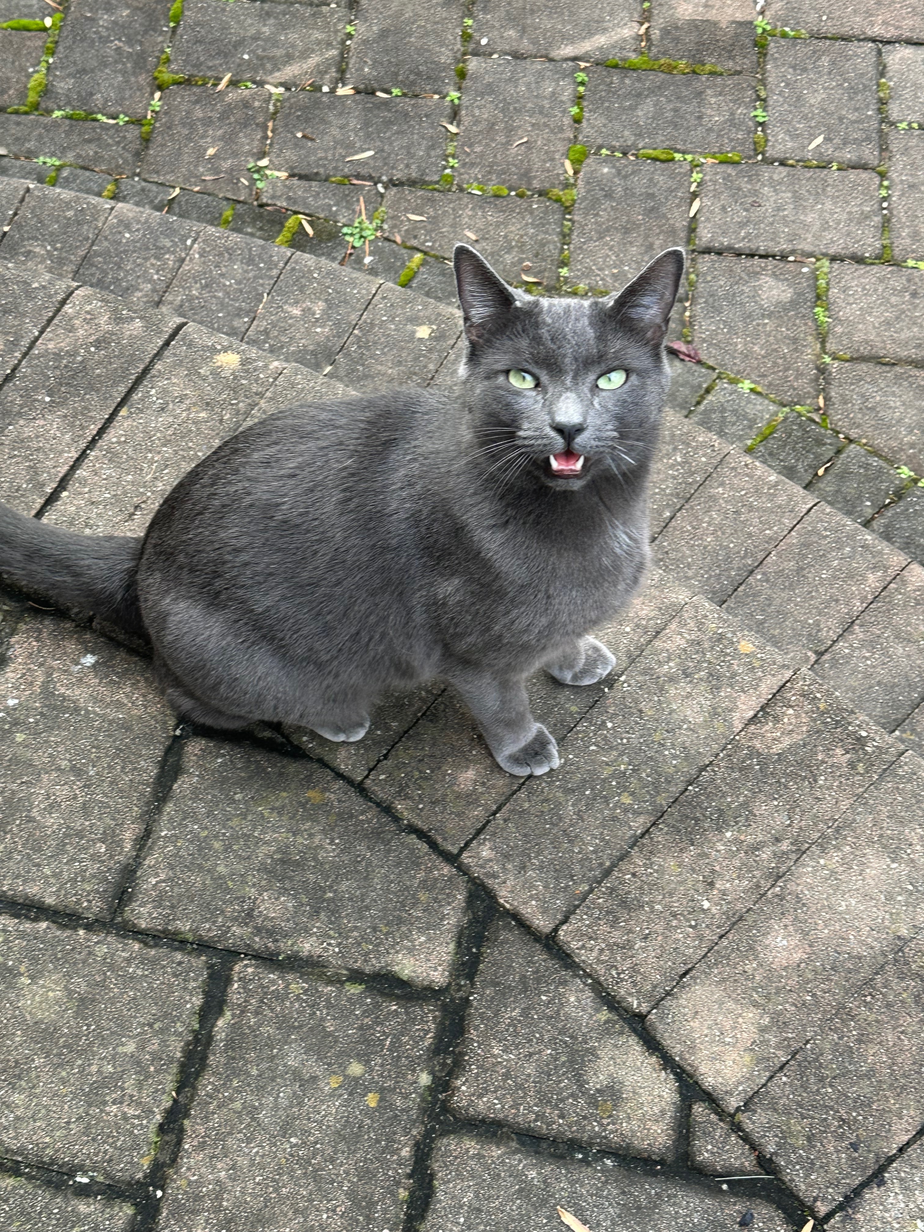 Very sweet boy, very affectionate, beautiful gray coat, green eyes, he looks like a blue Russian. I found him outside our house for the first time on November 20.