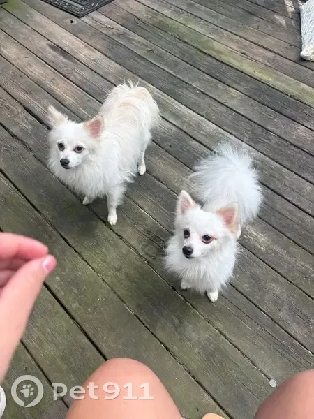 MALE DOG NAMED GRIZZLY. Has a White coat, with light brown ears and light brown spots on his back. He had on an orange collar with alligators on it. He’s a cautious dog/ gets scared fairly easily. Small dog