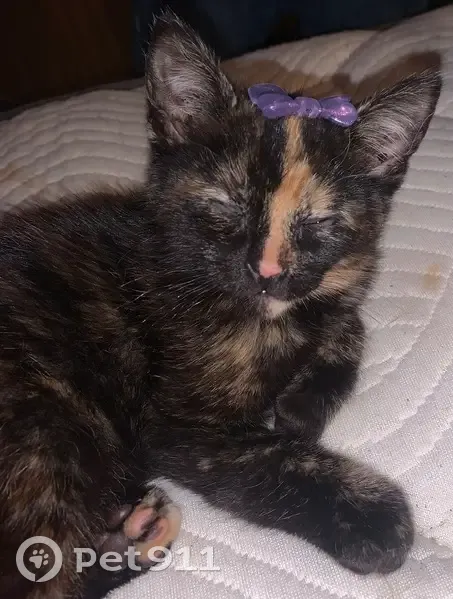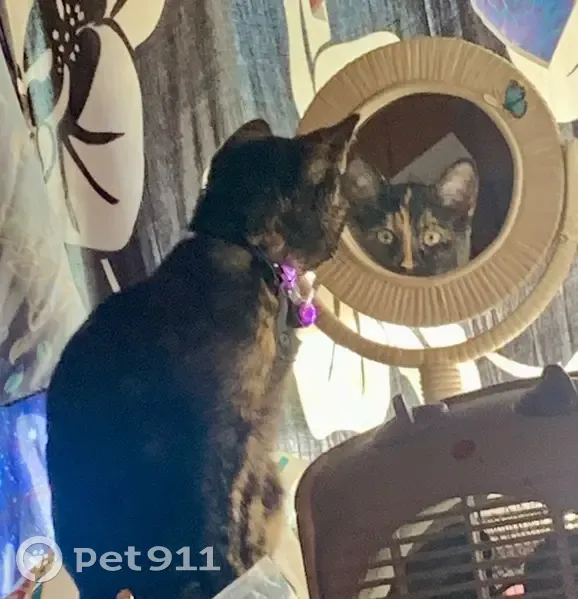 She is a small framed / petite female tortoise shell, with a orange stripe on her nose, and a red ring on her tail, like a fox. She responds to being meowed at, but is slightly skittish. She looks like a kitten but is full grown and was born day before thanksgiving. She will also drool when receiving loves and pets, and has been known to lay in the middle of the road and stop traffic (in Paonia) She has not been spayed yet and may be gallivanting around in heat.