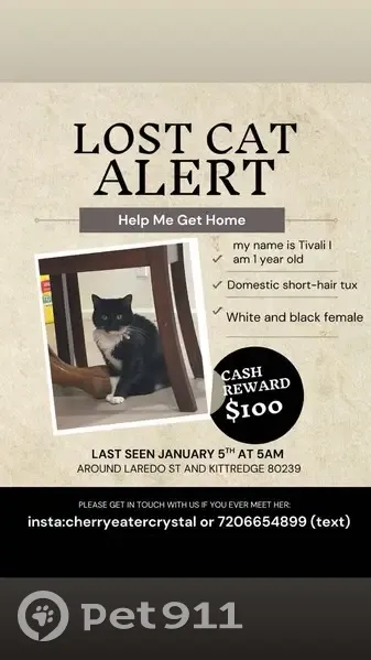 Has white paws the front ones on paw is more white than the other paw , she has tiny white hairs on her forehead black and white Female domestic short hair tuxedo cat and is 1 year old