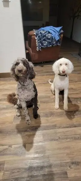 Bella, Goldendoodle, cream colored. The guy in the picture stole her from my house. The person has long hair, tan work, boots, and an Arizona flag tattoo on the front of his neck. Spotted 11/22 near 63rd/Vine West Des Moines, around 2pm