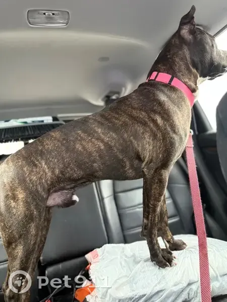 MALE DOG - color: Brindle - black and brown; white on belly and one white spot on back of neck no collar was on Love to run, and didn’t want to jump in car FOUND: County:Wayne City:Detroit Location Details (nearby cross streets):Found Seyburn and Kercheval in Detroit near Indian Village Date missing: ? Date found: 1/30/2026 Name (if missing):? Male or Female:Male Neutered/Spayed?:not sure/but looks like everything’s intact so I would say no Breed(s):Pit bull mix Fur Color:Brindle - black and brown striped with white fur on belly; and one white spot on back of neck Other Physical Features: Age:? Weight:? Collar/Microchip/Other: