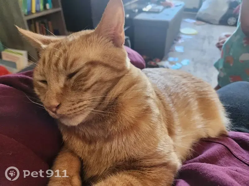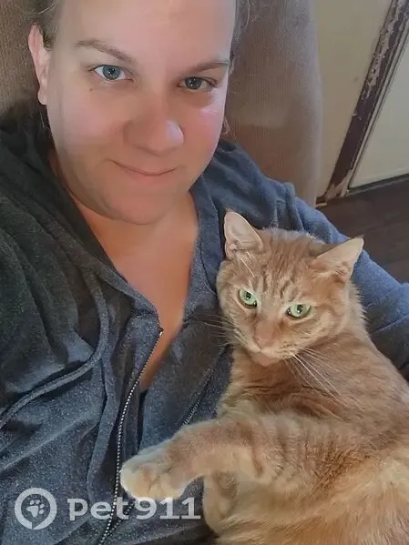 Abel, a male shorthair orange tabby cat, approximately 7 years old, 20lbs, neutered, snuck out of the house around 5:30am, Wednesday October 8 on Lee Johnson Road near the cemetery in Meadow. He is very skittish and has never been outside. You can try to gently and slowly approach, but he may get scared. He goes into hiding when we have company. He responds to Abel and "sweet boy".