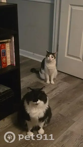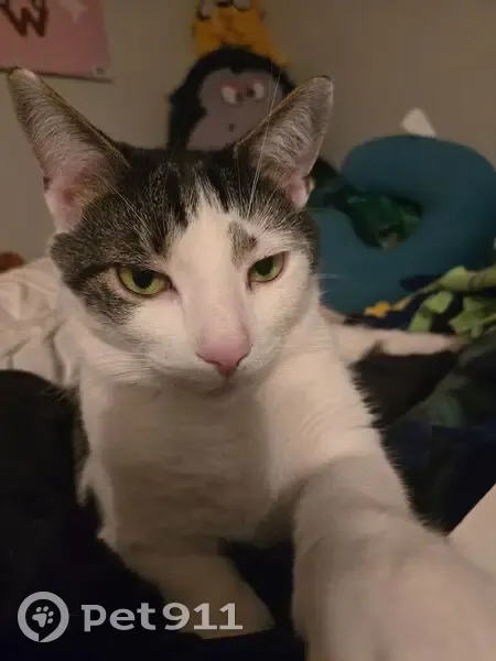 Smokey has a white belly with grey and dark blended back, pink nose. My daughter let him out Wednesday morning accidentally. He has been out before and always came home within a few hours. Its pretty cold and we are getting worried about him