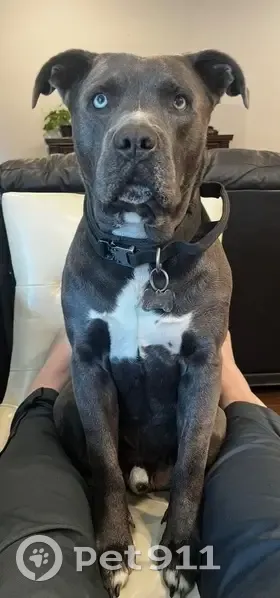 Both dogs are grey and white. They are very friendly. Teddy has white on his chest and a couple of paws. Lilly has white white grey freckles on her face and paws and chest. They are Pitt husky mixes. They look like pure pitts but they have great personalities