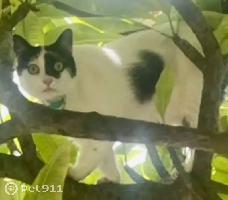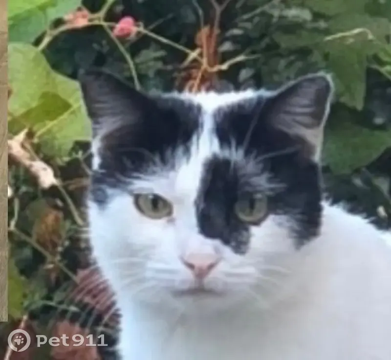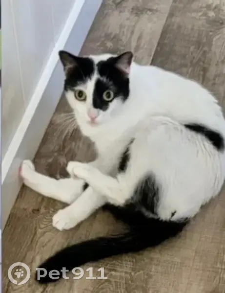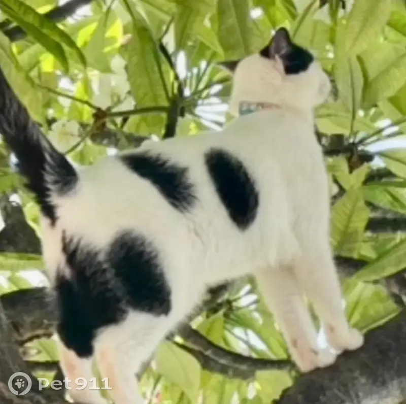 Merged with usl521564 listing. The reason is duplication of information. Description of the duplicate listing: White and black cat. Black patch on one side of her face, around her eye. Black heart shape on left side of her body, 3 black spots on right side of her body. Black tail.
