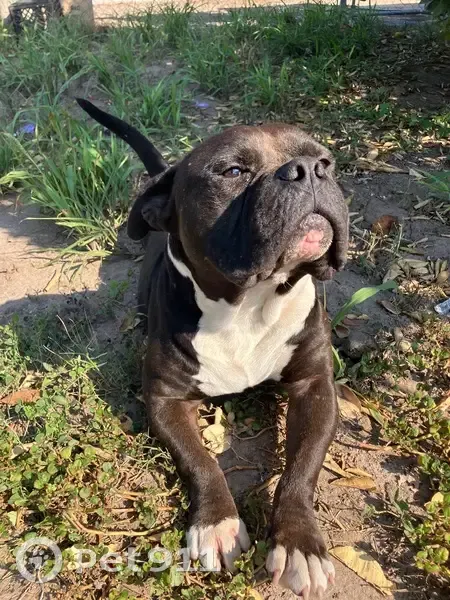 Friendly with other dogs and cats, extremely tame and well on a leash. Pup is house trained, is wanting to eat higher quality foods and was found with a semi fresh nail trim. This pup was raised with love and resources.