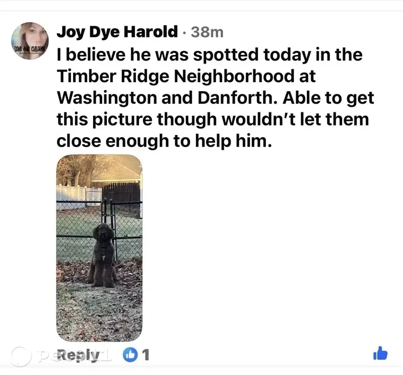 Please spread the word for this lost dog! Standard poodle chocolate brown! He’s 2 Bentley was lost on Feb 16 in Edmond Ok near UCO and Chowning Ave. My friend recently moved to a new place and she didn’t get her door locked and he got out. He’s been seen many times around UCO campus but no one has caught him yet. He will come to you if you have food. He is a service dog who has helped my friend with the death of her father. Message me anytime. My cell is 405-519-3008.