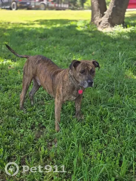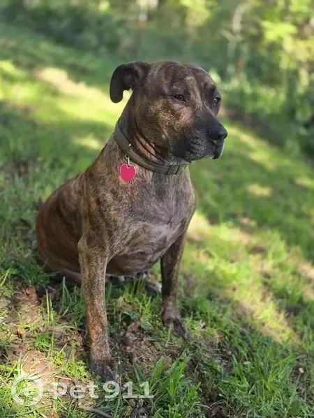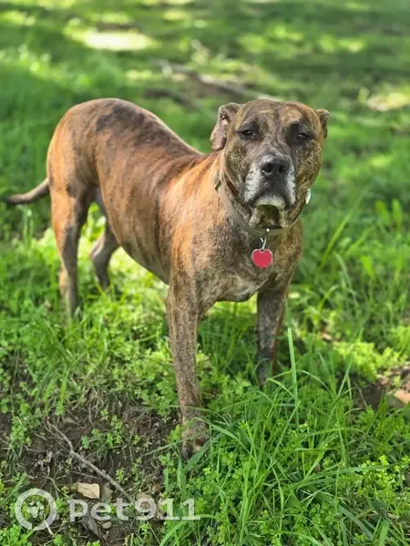 Brindle. Friendly. Name is Riggs. Lost about 8:00 pm Friday night. Missing a canine tooth. Green reflective collar with weddington animal hospital rabies tag.