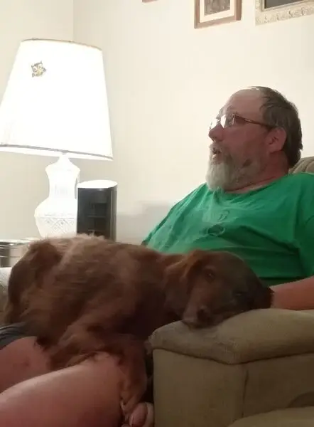 Jumped the fence and away from dog sitter. 95# tall. Reddish golden retriever with med long coat. No distinguishing marks, collar, or tags. Friendly but skittish and fully vaccinated. Name is Bruno, Male, not neutered. Last seen running into the woods behind the library.