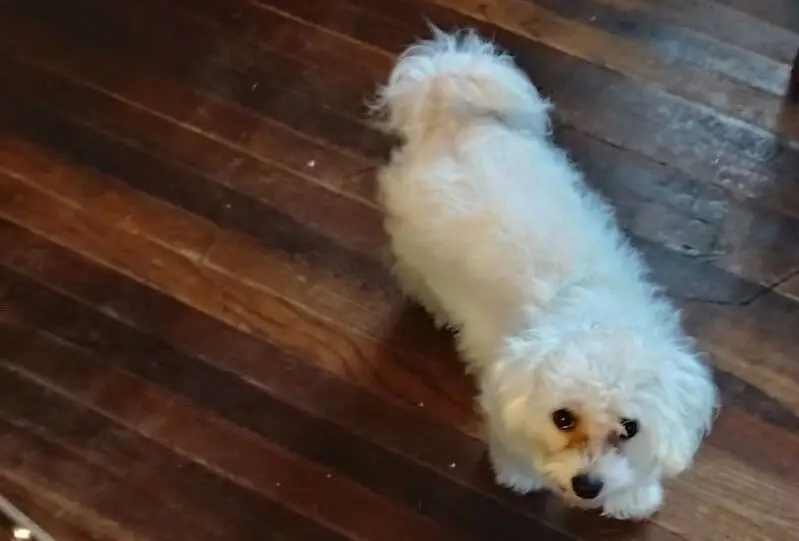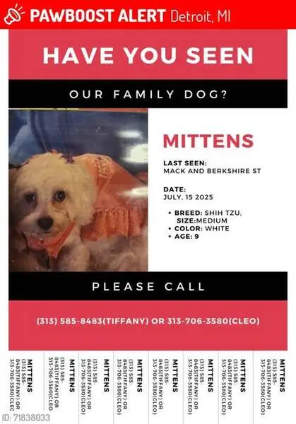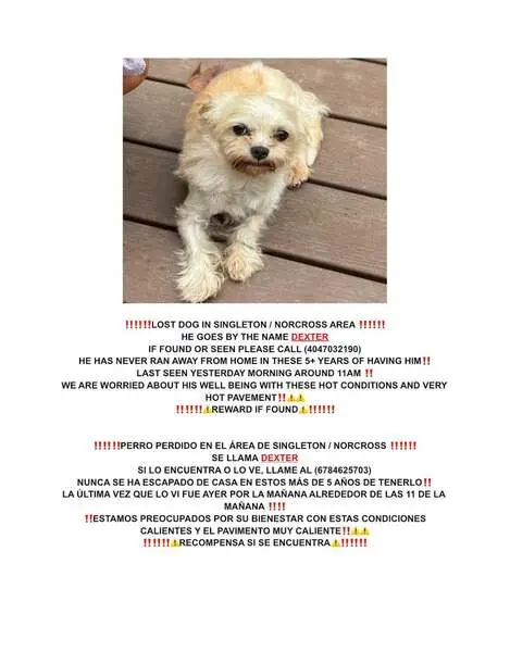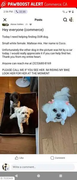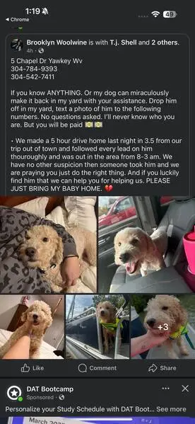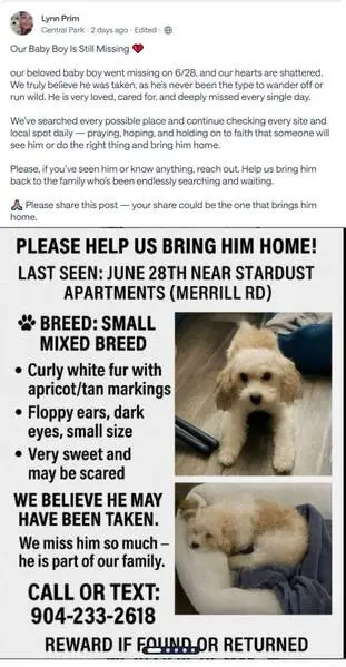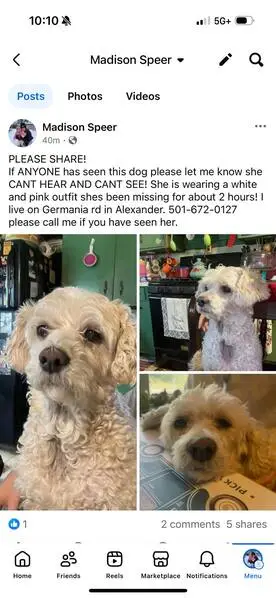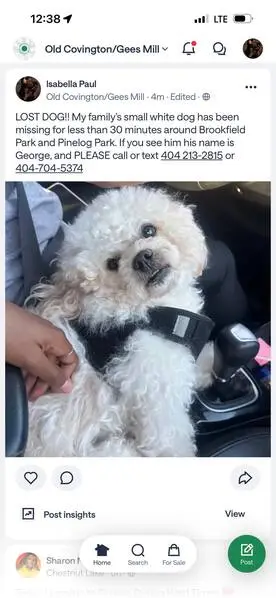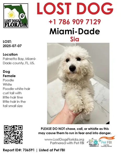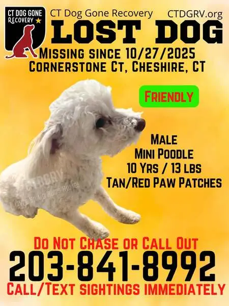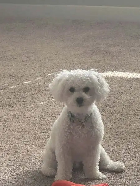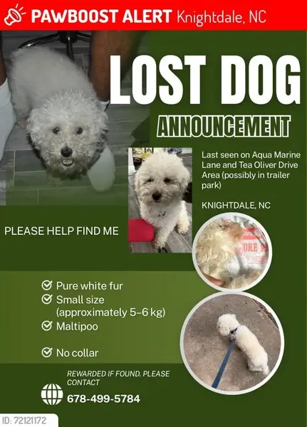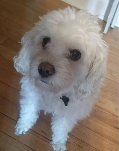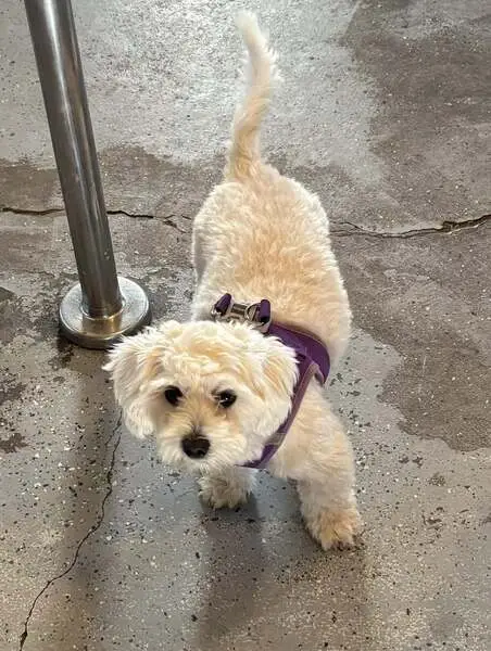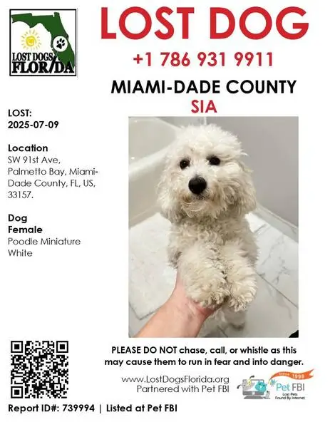 FOUND DOG — ERIE, COLORADO Last night at 9:15 p. M., my son and I found a small female dog near Erie Middle School, at the corner of Main Street and Wells Street. She had wandered into traffic and nearly got hit by a car. She was scared, it was dark and getting cold, so we brought her to safety. She is an all-white female dog with distinct brown markings under her eyes. She weighs roughly 10–12 pounds, has mostly curly hair, and a full tail. She appears to be well-groomed and well-cared for, so we believe she has a family looking for her. If this is your dog or you recognize her, please reach out so we can get her home safely.