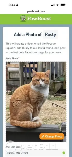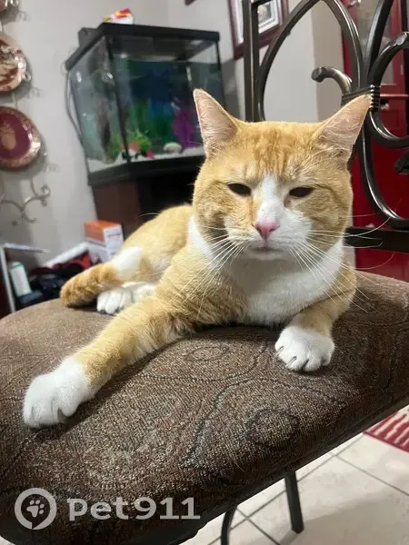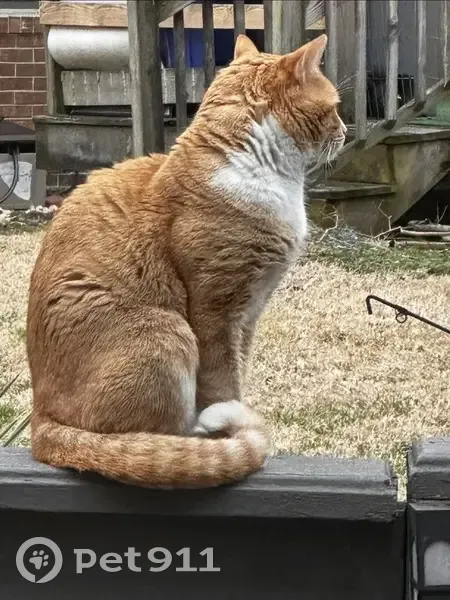Rusty is an Orange Tabby Cat very docile not an aggressive cat. Very skittish and does not approach those he don’t know. Does not have a collar and a full size cat.