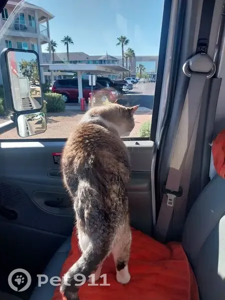 We are new to the area, so sammy doesnt know her area or smells. Im sure she is confused. Sammy we believe jumped from 2nd story balcony of apartment complex. She got scared of other cats. She is shy and scared. Sammy is grey & White with a little brown, short hair, Siamese, with blue/grey eyes. We are in a wooded area with a lot of other cats around. I will take any suggestions ty