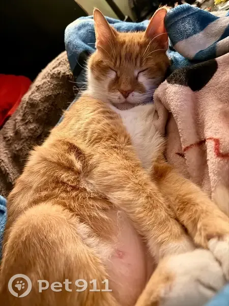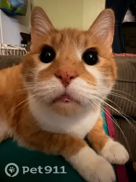 Phoenix is orange and white. He has freckles and orange across the top of his nose. He’s also has white feet and a long striped tail. He’s responds to his name and tummy yummys. He’s very loving and affectionate he sleeps on my chest every single night. The last time I seen him was when we were moving furniture into the house on march 21st.