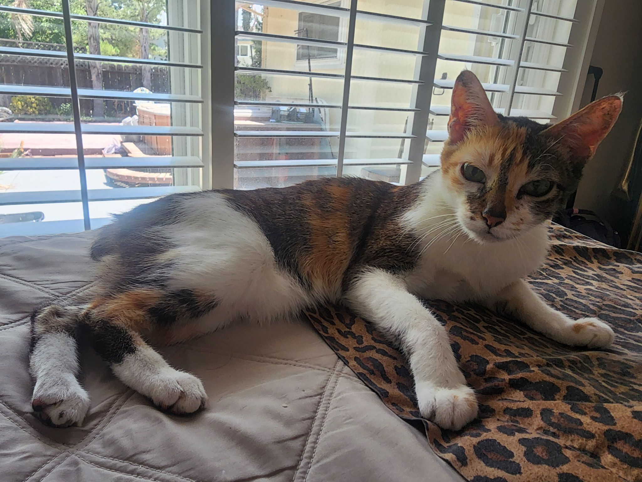 Petite shorthair with white underbelly and black and orange pattern on back, head and hind legs, faint tabby stripes on the colored areas, and a black nose. Has a stub tail. Is microchipped, but contact details are outdated. Spayed with no eartip. She is an indoors-only cat. She might have snuck out the front door without nobody noticing at around 5 pm when we left to attend Christmas mass. We were home shortly after 6, but did not realize she was nowhere in the house until past midnight. It's completely unlike her to exit the house even if the door is open, and furthermore, it was raining all day on Christmas Eve, even less reason for her to go out. None of us can make heads or tails of it.