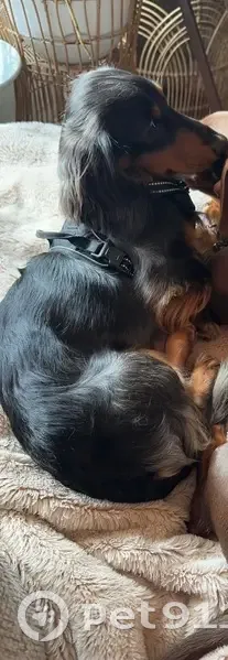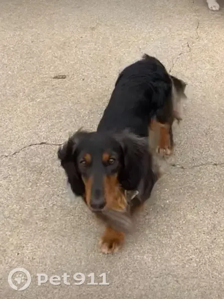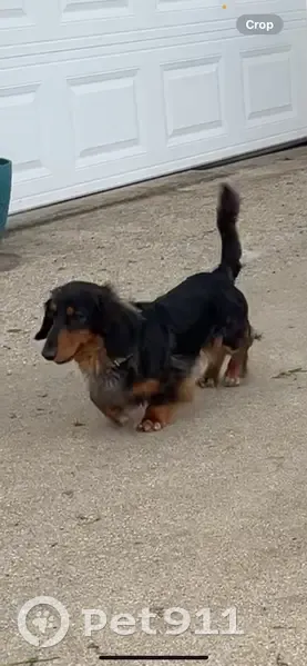 His name is bear. He has a black and brown coat, long haired miniature dachshund. He is friendly but seems to be very scared when people have tried to get him so he just keeps running. Be patient and give treats. He got out of the front door.