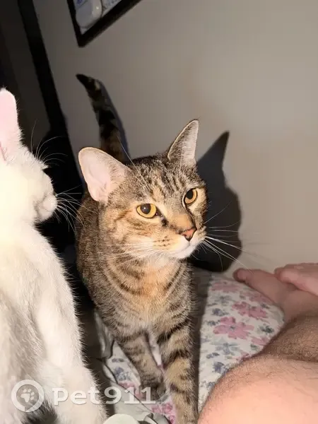 Penny is a medium sized, skittish female cat with a mix of brown, black, and orange tabby markings. She has bright golden eyes and a spotted belly. She may run or hide if approached quickly. She is microchipped but to her previous owners & her original name “Star”. Penny disappeared from our apartment sometime between 10pm 11/17- 7am 11/18 (I work overnights & she was in my apartment when I left for work at 9:30pm)