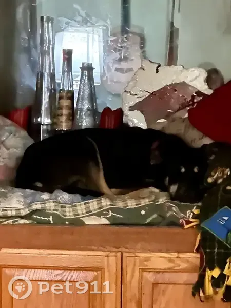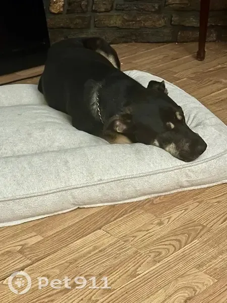 A friend accidentally left the front door open. He’s about 65lbs. His coat is black with a touch of white and tan. Sammy has tan eyebrows. He’s a barker when scared.