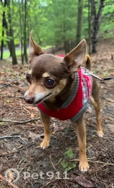 “Mocha” is a Brown Chihuahua dog who is very kind but has a collapsing trachea so is on daily meds. He has a small chip of one ear alls several missing teeth. Nicest Chihuahua but may be scared and coughing a lot at this point.