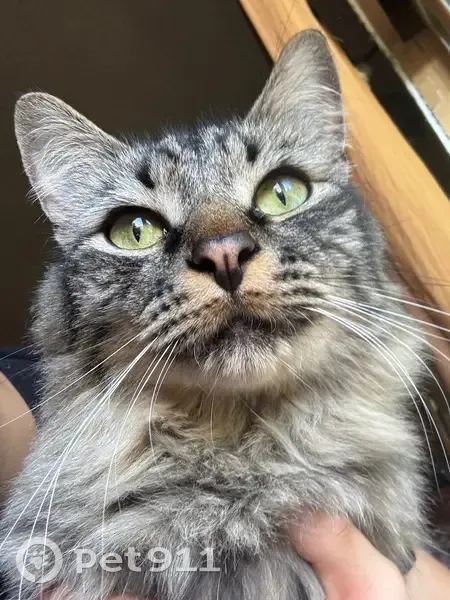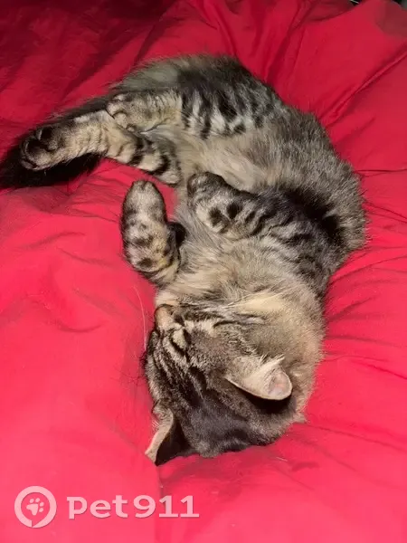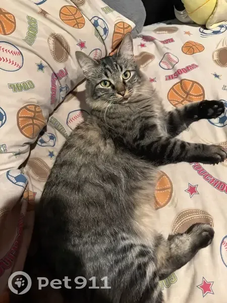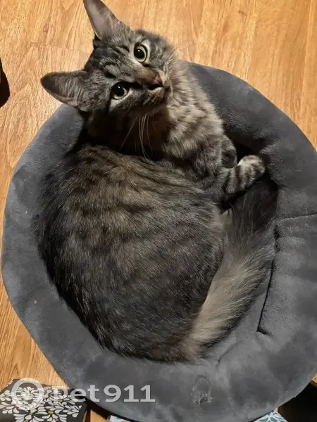 Chest is a grey tabby with a lighter grey belly and a distinctive brown/orange nose and mouth. He does not have a collar. Chester is very friendly and will come up to greet other people. He is very talkative and does not mind being held. He is an indoor/outdoor cat and was out exploring on the night of October 1st and did not come home in the morning.