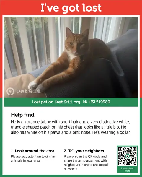Every hour, the Pet911 search robot, based on artificial intelligence, scans and recognizes thousands of photos from all thematic sites and social networks in order to find pets similar to yours.