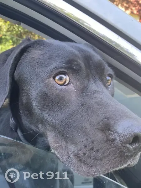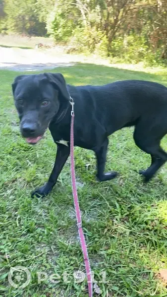 Pit/lab mix, black with some white on chest, ran off wearing a black martingale collar with red/black lead rope leash. She is probably about 60ish pounds. Typically friendly, may be skittish around new people. Was trying to take her out potty on the leash but other dogs in the home pushed me over while door was open and she pulled the leash out of my hand.